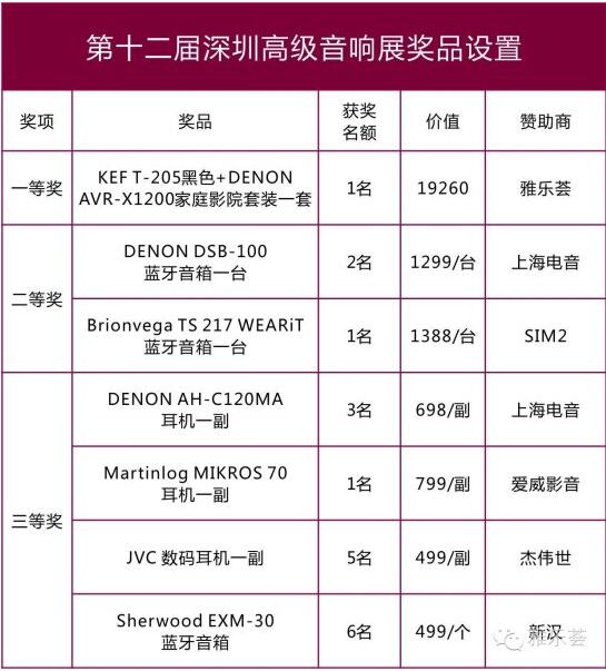 看了那么多价值不菲的奖品,不知道里面有没有你心动的呢?尤其是一等奖KEF T-205黑色系统+DENON AVR-X1200家庭影院套装一套,价值近两万元音响设备究竟会花落谁家?看得出这次音响展,主办方雅乐荟为了回馈大家的厚爱而精心准备了很多。现在,就让我们一起来看看抽奖规则,要怎样才有机会获得以上这些奖品呢?